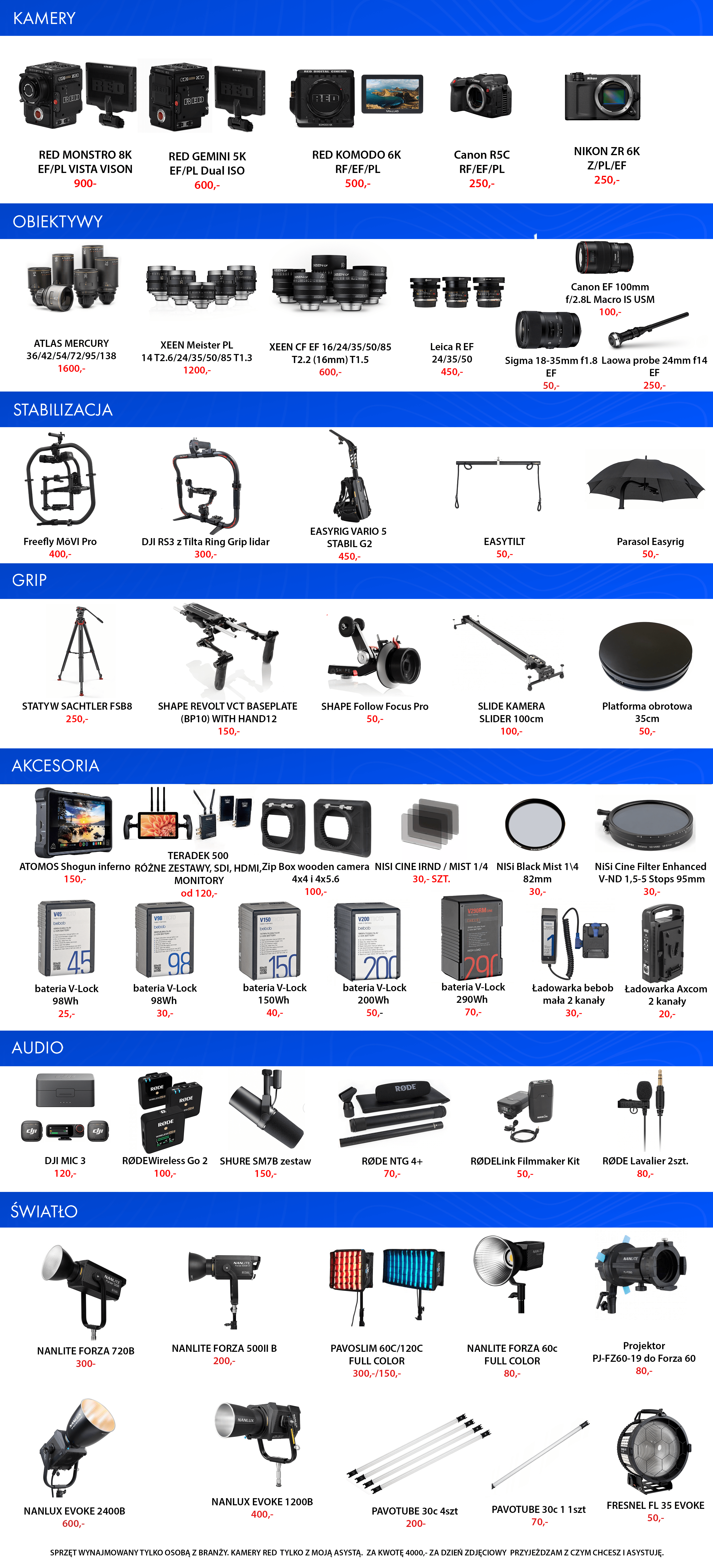 Znajdziesz tutaj spis sprzętu na którym pracuję.